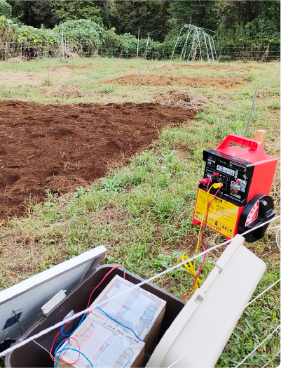 木炭蓄電器は、水に強く、定期メンテナンスも不要。屋外利用に適しているため電気柵でも活用。