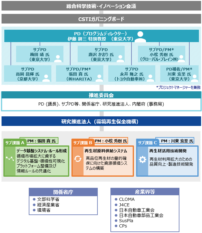 SIP第3期課題「サーキュラーエコノミーシステムの構築」研究実施体制