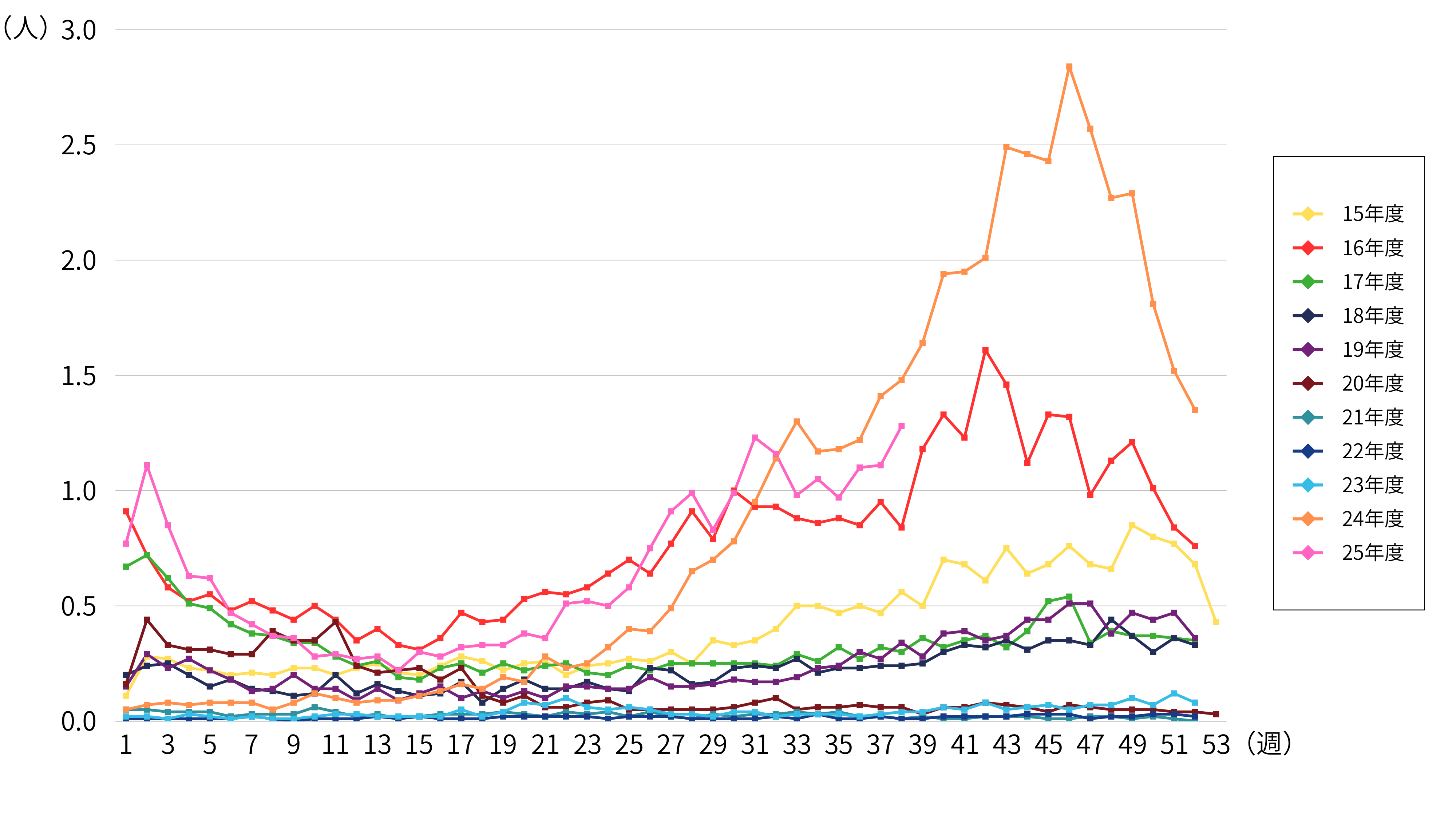(https://id-info.jihs.go.jp/surveillance/idwr/jp/graph/weekly/16myco.html)を加工して作成