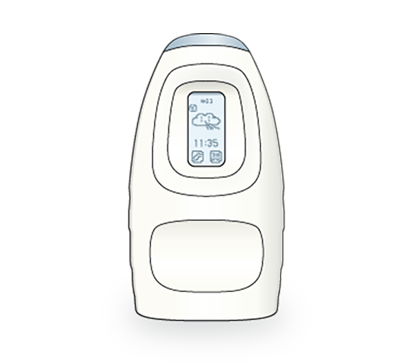 測定はとても簡単です。手のひらサイズの装置に向かって、一定の速さで息を吐くだけです。1分ほどで結果がわかります。